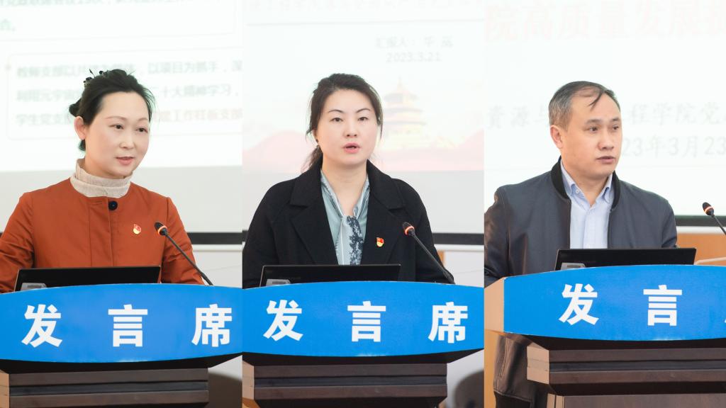 基层党总支代表大数据学院、食品药品制造工程学院、资源与环境工程学院3个单位的党总支书记就落实全面从严治党主体责任进行交流和表态发言。