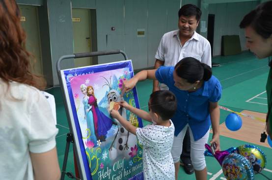 学校十余位教师的子女报名参加了活动。小朋友个个活泼可爱,在爸爸妈妈的带领下,认真努力地完成托乒乓球接力、贴鼻子、乒乓球掷准、亲子接力等有趣而有意义的项目。每个小朋友都积极的投入到游戏当中,在大家的欢呼和加油声中,每个家庭都取得了骄人的成绩,孩子们纷纷获得了工会精心准备的小礼品!家长和孩子们都乐此不疲,整个体育馆内都回荡着大家开心的嬉笑声,活动最后在集体感恩的欢乐气氛中圆满结束。