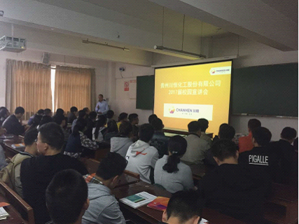 12日下午,贵州川恒化工股份有限公司在3教216召开了校园宣讲会,由公司采购部经理、人力资源部经理及生产部部长向大家介绍企业及招聘概况,我院2017届毕业生聆听了宣讲会,现场气氛热烈,座无虚席。宣讲会上,大家观看了贵州川恒化工股份有限公司以磷·关爱·生活为核心理念的宣传片,并通过生产部部长对川恒股份的品牌及基本情况的介绍,同学们对公司有了更进一步的了解;接着,公司人力资源部经理向同学们详细解读了本次招聘会聘用岗位、岗位要求、招聘人数、工作地点及福利政策等。最后,提问答疑环节,川恒公司对同学们提出的问题一一进行了解答。