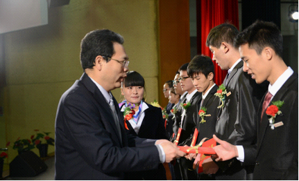 12月12日下午,best365在逸夫大礼堂举行以“身边的榜样前行的力量”为主题的2013—2014学年学生表彰大会暨优秀大学生先进事迹报告会。我院学生丁三、王衍伟、刘浩达等获得国家奖学金、励志奖学金、校级奖学金以及优秀班干的同学获得表彰和奖励。