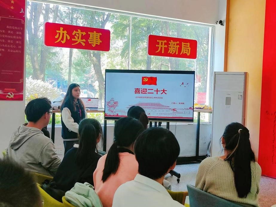 vwin德赢ac米兰官方网建筑管工供热研究生党支部于大学生活动中心展开了支部主题党日活动,活动的主题是:学习中国共产党第二十次全国代表大会精神。整个活动分为四个部分,分别是:重温入党誓词,党员讲微党课,时事讨论以及观影《领航》。