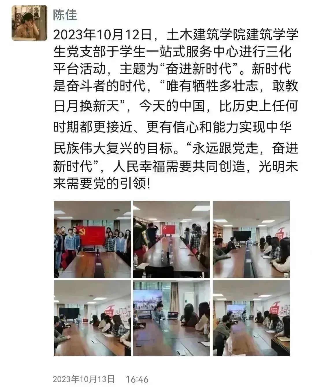 【三化平台】“奋进新时代”主题党日活动——建筑学学生党支部