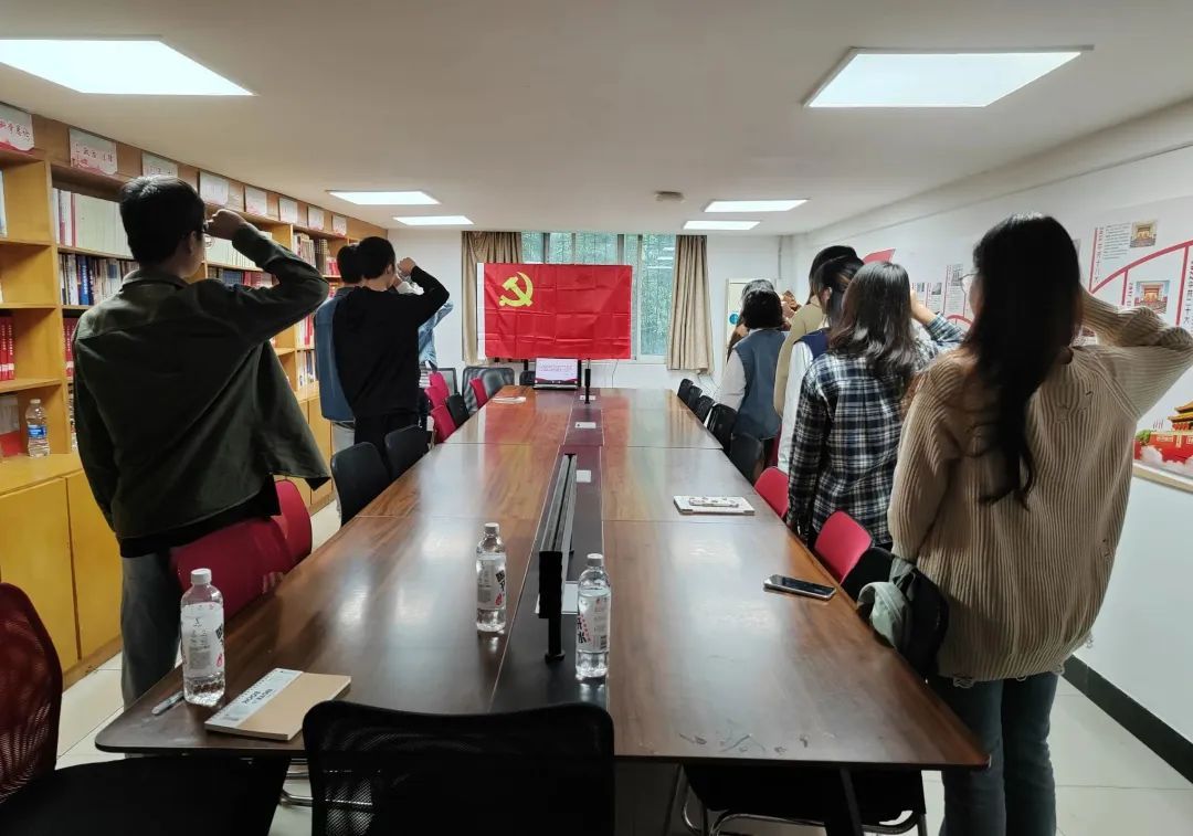 在支部副书记王小莉同志的带领下,支部同志们一起重温入党誓词:“我志愿加入中国共产党,拥护党的纲领,遵守党的章程,履行党员义务,执行党的决定,严守党的纪律, 保守党的秘密,对党忠诚,积极工作,为共产主义奋斗终生,随时准备为党和人民牺牲一切,永不叛党。