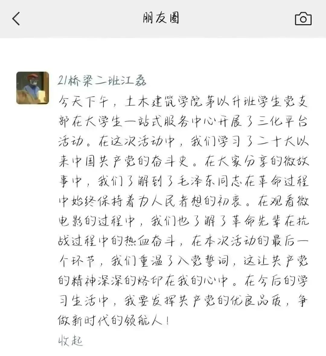 活动结束后,支部党员运用视频、音频、照片以及学习笔记等方式在微信朋友圈等发表学习感受。