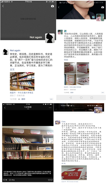活动结束后支部成员通过微博、微信等新媒体平台,总结了一天的学习党史和榜样的心得,并在朋友圈分享了自己在“三化平台内的故事。