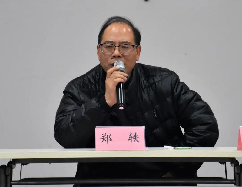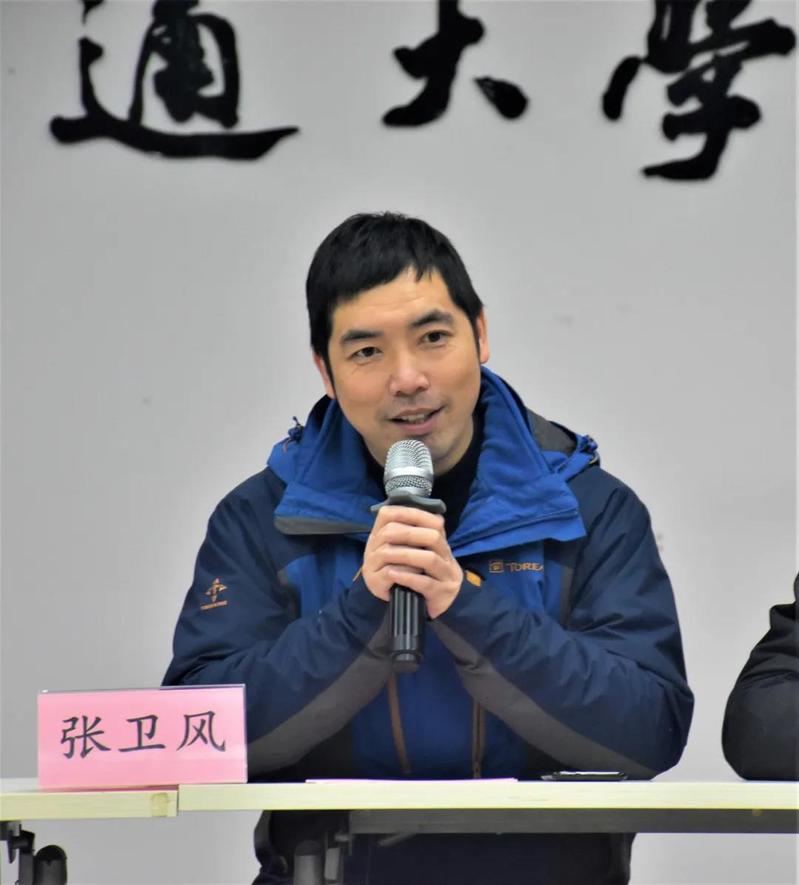 张卫风老师发表讲话,他谈到,来到大学首先要明确自己的初心,来大学是来学习经验和知识学会如何处理人际关系,我们要奔着目标前进,让四年后的自己有质的飞跃。