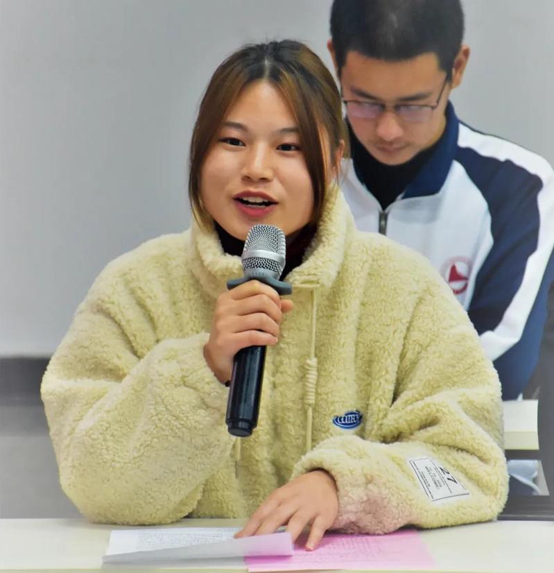 研究生代表陈晶为大家发言,她用她的田径经历告诉同学们要做一个努力的人有准备的人并鼓励大家在兼顾学业的同时也要积极运动官伟也用自己的亲身经历激励大家要争做花椒先锋不要荒废学业,对自己负责