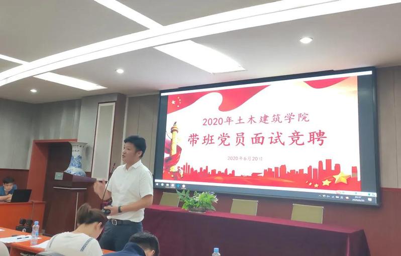 2020年6月20日,vwin德赢ac米兰官方网vwin德赢ac米兰官方网20级带班党员招新面试在土建楼200隆重举行。院党委副书记龙良华,学生党员教育管理中心指导老师万雯怡,赵昕宗老师,刘伟老师,以及19级带班党员,各支部部分党员参加本次活动。