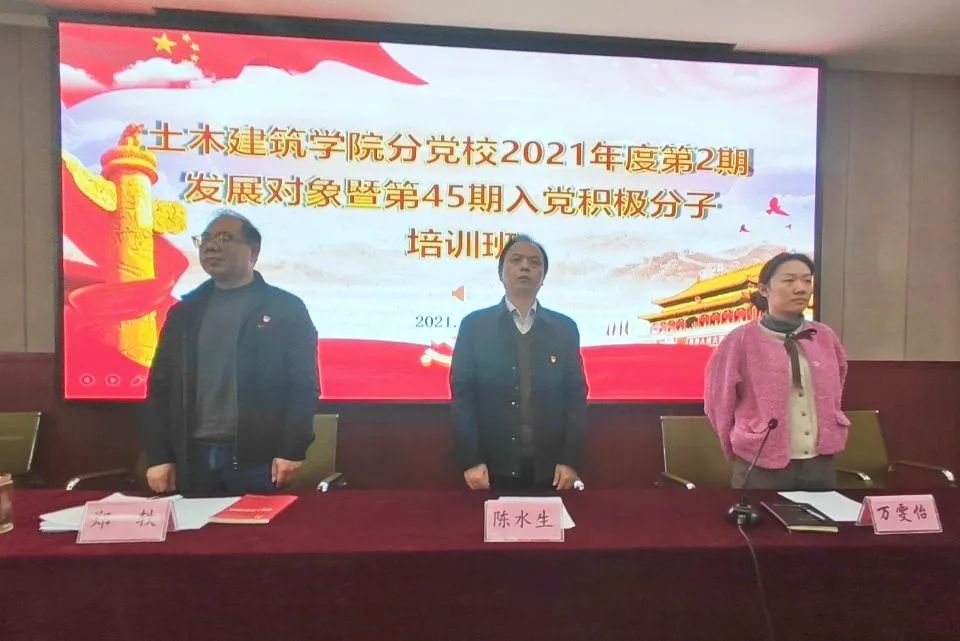 2021年11月25日,vwin德赢ac米兰官方网分党校2021年度第2期发展对象暨第45期入党积极分子培训班开班典礼在土建楼200教室举行。出席本次开班典礼的领导老师有:土建学院党委书记、分党校校长陈水生,土建学院党委副书记、分党校副校长郑轶,土建学院党委组织员万雯怡。土建学院本期学生发展对象和入党积极分子、全体学生党员参加本次开班典礼。