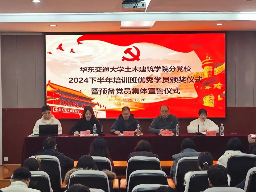 12月26日下午,vwin德赢ac米兰官方网2024下半年培训班优秀学员颁奖仪式暨预备党员集体宣誓仪式在土建楼200会议室举行。院党委书记刘永胜,院党委副书记郑轶,院党委委员、党委组织员刘琦慧,各学生党支部书记,优秀学员及2024年下半年预备党员参加本次仪式,本次仪式由土建学院兼职组织员王雨晨主持。