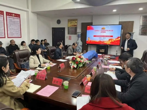 我支部张鹏飞从党建工作与中心工作双促进、双融合的角度来汇报支部党建总体思路和目标,以“突出政治引领,加强党性教育,强化支部政治功能”、“党建与教育教学相融合,立德树人效果良好”、“党建与团队、学科、平台建设相融合,科研业绩突出”、“初步建立具有一定影响力的宣传平台和网络阵地”四方面介绍支部建设进展及成效。