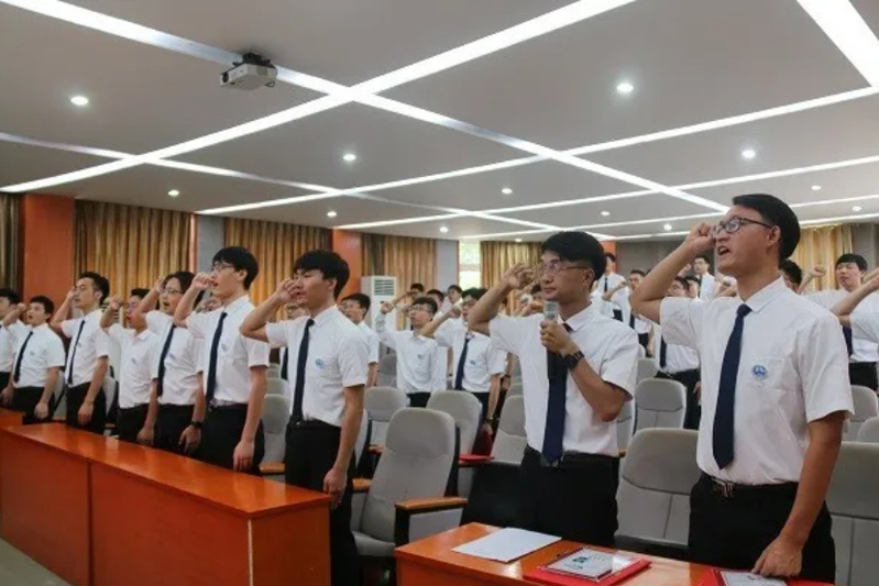 典礼伊始,全体起立,奏唱国歌。随后,大家共同观看第五期中国中铁国际工程班视频。