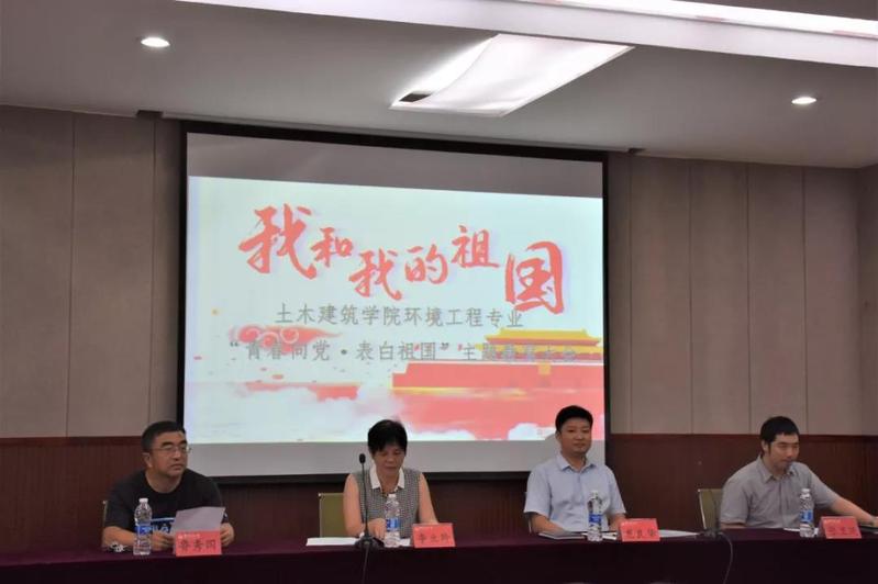 正逢祖国成立70周年,为树立同学们爱国情怀,上好新生开学第一课,9月12日下午,在土建200召开vwin德赢ac米兰官方网环境工程专业“青春向党•表白祖国”教育主题大会。本次会议由环境工程辅导员刘伟主持,vwin德赢ac米兰官方网党委书记李立玲、副书记龙良华、环境工程学科负责人鲁秀国、环境工程教研室张卫风应邀出席会议。