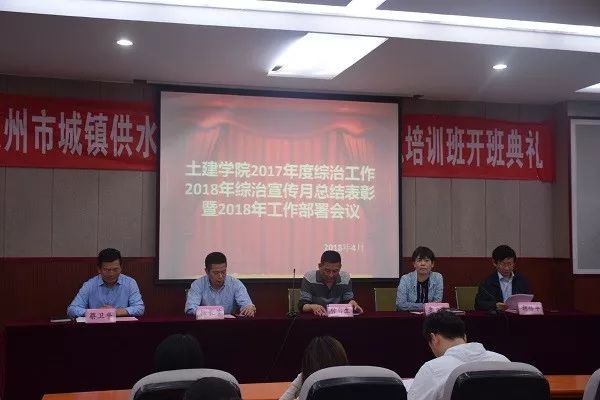 4月25日下午vwin德赢ac米兰官方网2017年度综治工作2018年综治宣传月总结表彰暨2018年工作部署会议于土建学院学术报告厅胜利召开。校保卫处处长付自生、土建学院党委书记李立玲、土建学院院长徐长节、常务副院长胡锋平、院党委副书记蔡卫平出席本次会议。会议由土建学院学工办主任闫伟主持。