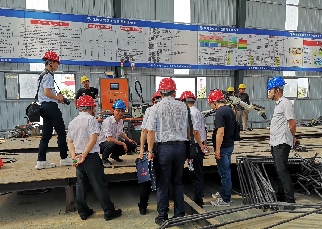 随后,一行人参观了红色宣讲长廊、宜遂高速B3标平面布置、实验室,对交建公司的党建工作和工程管理氛围有了初步的了解。为了更贴近工程实际,一行人前往宜隧高速B3标进行了现场观摩。强化职工安全生产意识是党建工作的重要内容,安全体验馆基于虚拟现实(Virtual Reality,VR)技术设计了机械伤害、综合用电、安全急救等项目,让书本上的安全生产教育知识鲜活生动、令人印象深刻。手臂式焊接机器人在钢筋加工中的成功应用可减轻人工劳动强度、提高作业效率,是科技服务生产的典型案例,这也激励了科技工作者不断提高思想认识、积极投身社会经济发展。