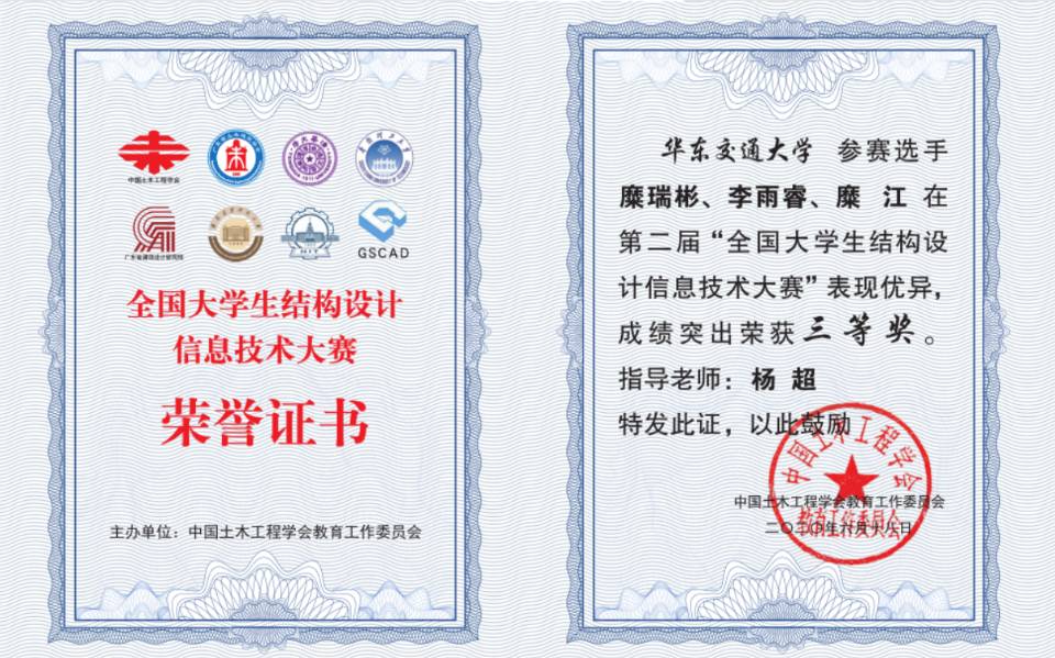 6月30日,“第二届全国大学生结构设计信息技术大赛”获奖名单揭晓,vwin德赢ac米兰官方网土木工程学院3支参赛队伍在结构工程教研室杨超博士的指导下获三等奖3项,在此次竞赛中,德赢官网学子以优异的成绩为德赢官网争得了荣誉。本次竞赛从发布竞赛通知到作品提交,历时234天,共有来自清华大学、浙江大学、天津大学等341所高校的2140支队伍参加,提交作品888份。