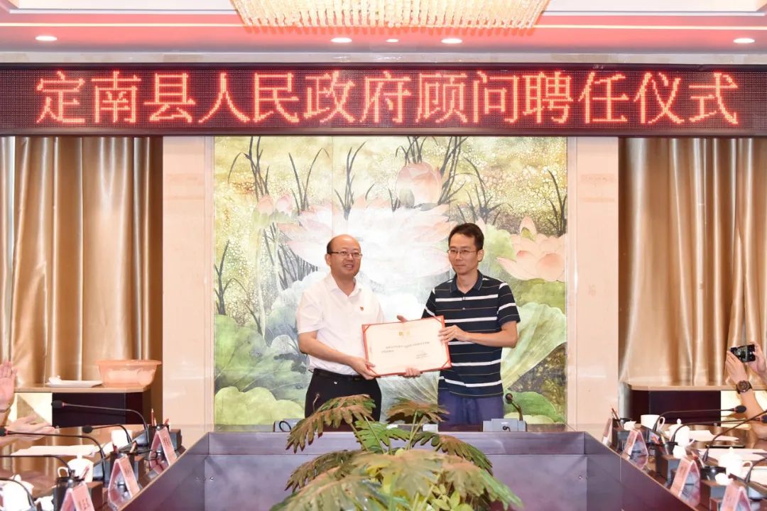 定南县委书记赖正文为李晨教授颁发“乡村振兴发展顾问”聘书