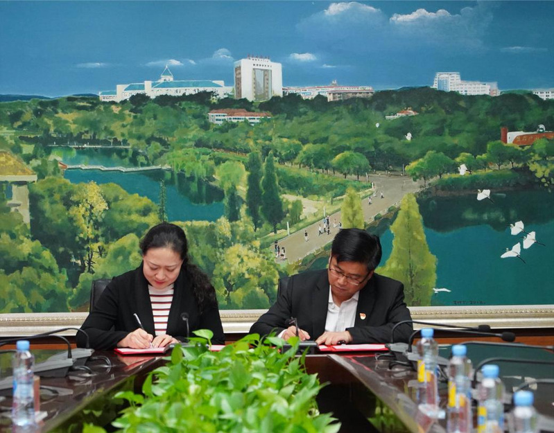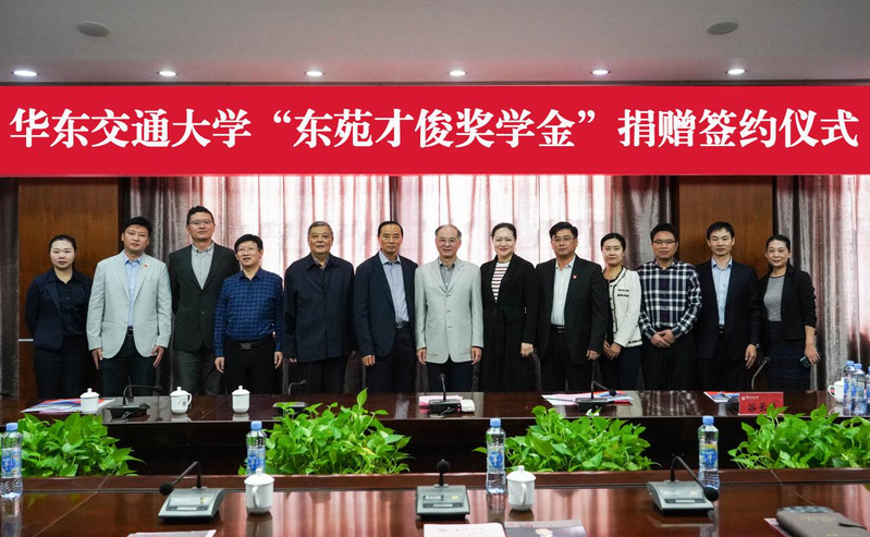 对外联络处处长、校友工作办公室主任、教育发展基金会理事长、法人罗侃与上海东苑房地产开发(集团)有限公司副总裁何红萍校友共同签署了“东苑才俊奖学金”捐赠协议。
