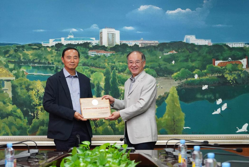 图1 万明为侯抗胜颁发捐赠证书和捐赠纪念牌