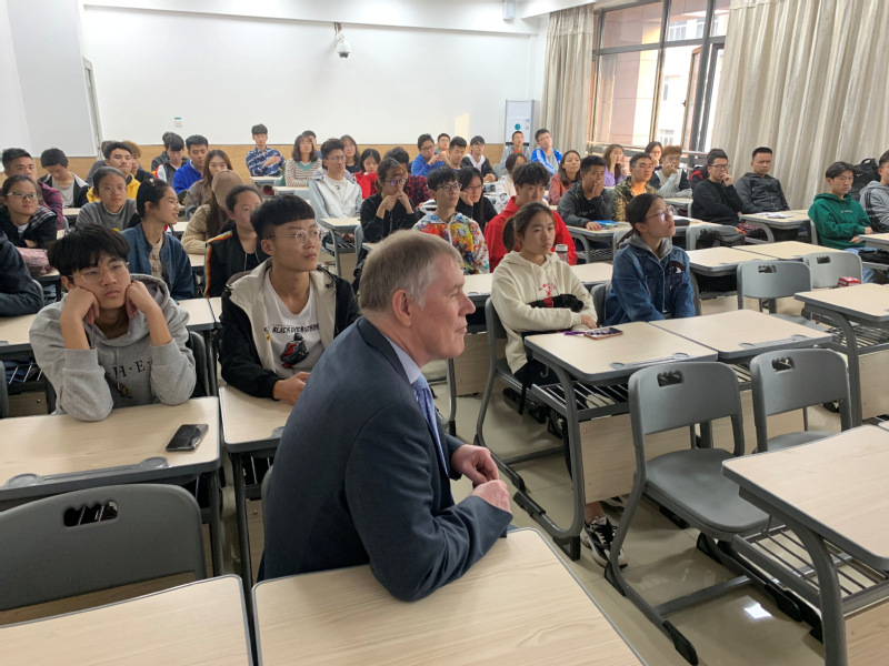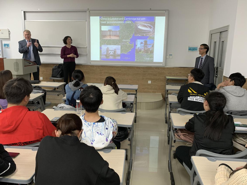 之后,蔡方方博士一行到南区25栋教学楼与德赢官网2019级工程管理专业(中英合作办学)新生见面。蔡院长首先对工程管理大一学生表示问候,之后介绍了ARU的地理位置、学校历史、德赢官网学生在ARU的学习情况等,并播放了在ARU就读的德赢官网2016级工程管理专业学长学姐对2019级学生的学习建议视频。