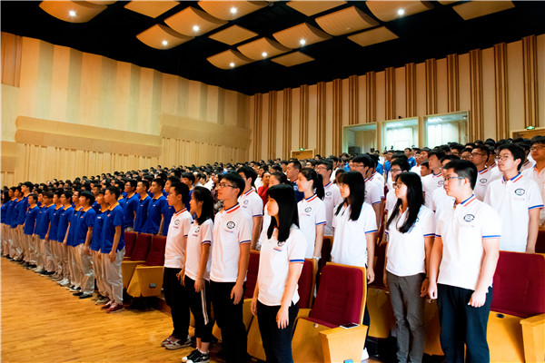 会议伊始,领导和全体詹天佑班学生起立,齐唱国歌。大会在庄严的国歌声中拉开帷幕。