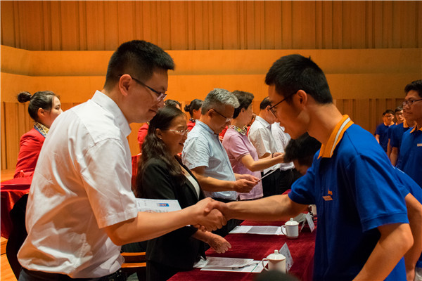 宣誓完毕后,各位领导给13级詹天佑班同学颁发毕业证。万明紧紧的握着天佑学子的手,表示:希望你无论走到何处,都不要忘却自己是一名交大人,是一名天佑人!明天交大以你为荣!