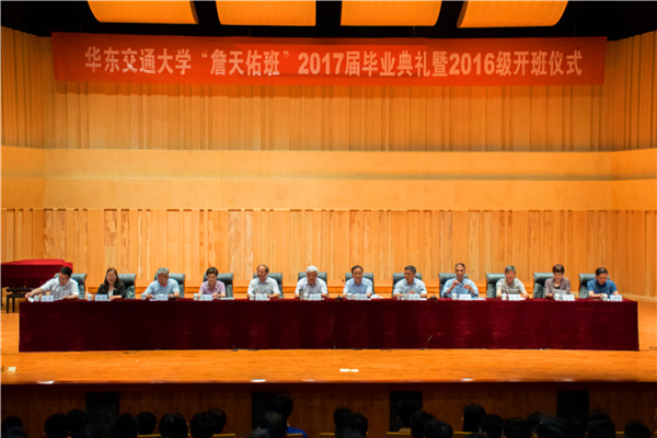 为弘扬天佑精神,树立新时代天佑人的榜样,5月25日,德赢官网于艺术学院音乐厅举行2017届詹天佑班毕业典礼暨2016级詹天佑班命名典礼。詹天佑科学技术基金会理事长蔡庆华出席典礼并为现场师生作《中国的高速铁路》专题讲座,詹天佑科学基金会副理事长兼秘书长宋凤书,副秘书长赵炎、周建昌,校党委书记万明,校长罗玉峰出席。党委副书记汪立夏主持典礼。土建、交运学院领导、“詹天佑班”辅导员和全体学生共计500余人参加活动。