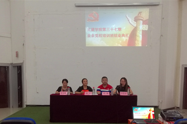 620日,土建学院第三十七期党课结业典礼于逸夫楼负一楼道德讲坛举行。院党委副书记程浩、学工办主任闫伟、学工办副主任黄水梅、院组织员万雯怡出席了此次典礼。万雯怡担任典礼主持。