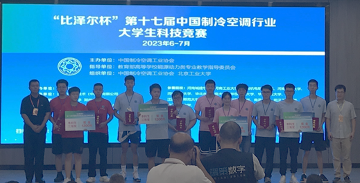 2023年7月10-11日,德赢官网建筑环境与能源应用工程专业2020级本科生张强、陈永军、杨学斌三名同学,在专业教师的带领下赴河南省郑州市参加“比泽尔杯”第十七届中国制冷空调行业大学生科技竞赛,荣获本科生组三等奖。