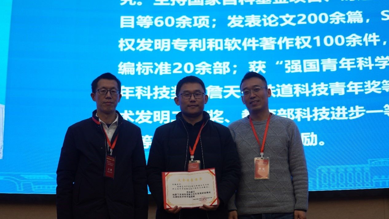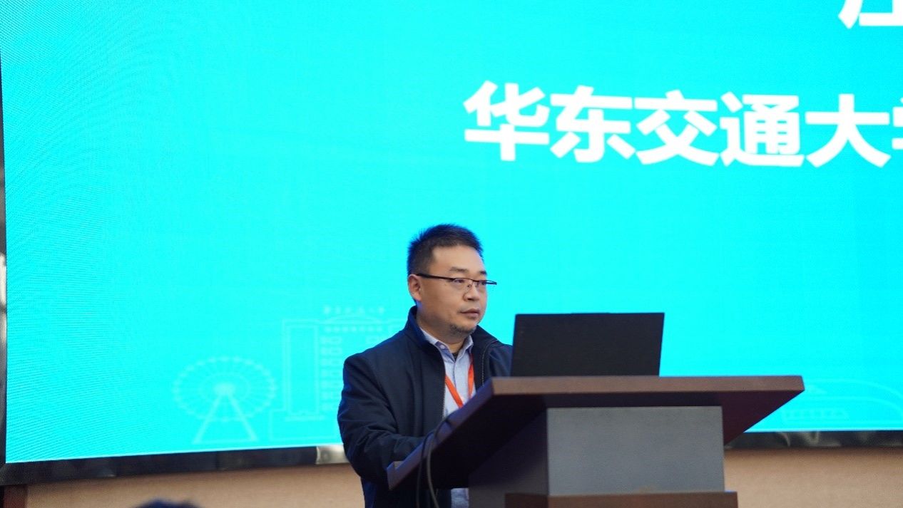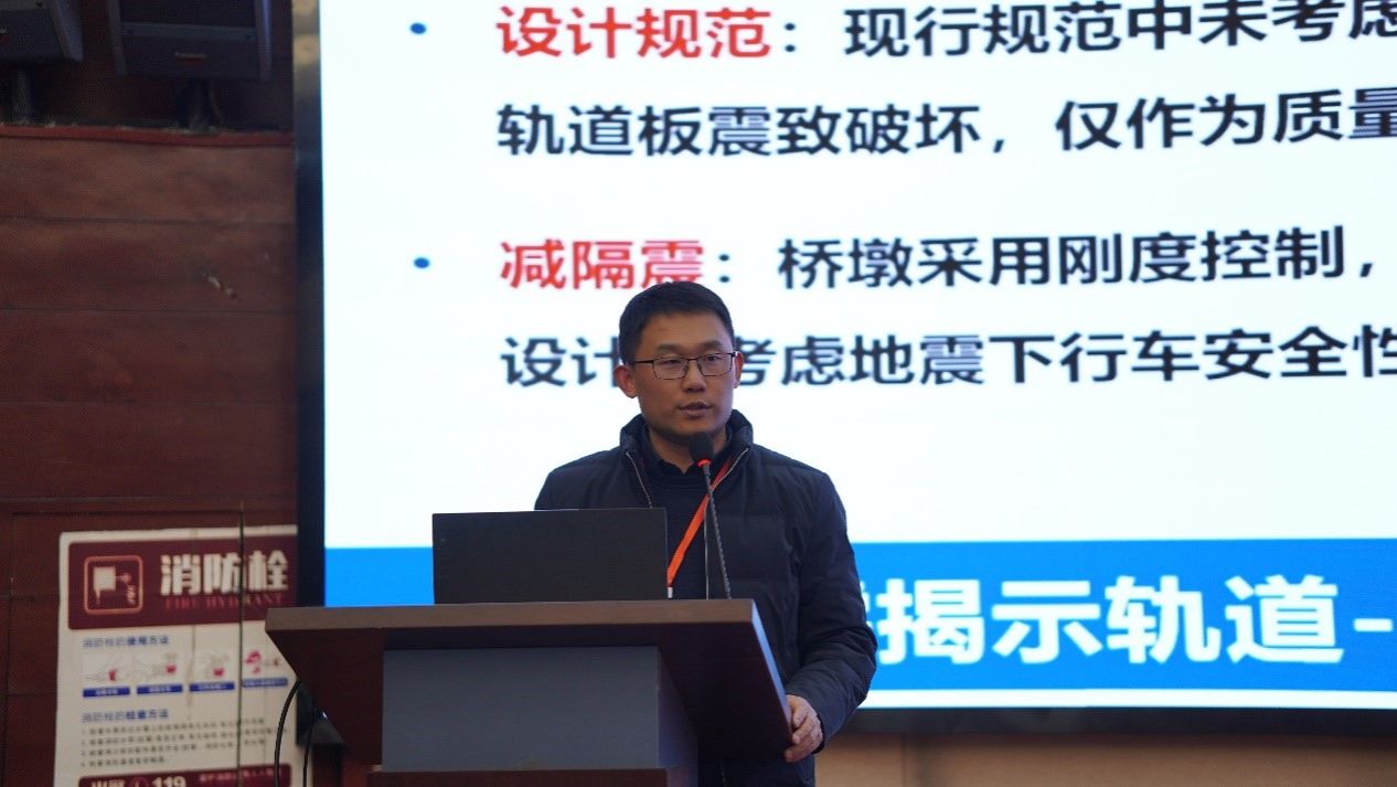 中南大学国巍教授做《地震下高速列车-轨道-桥梁系统灾变模拟、感知、机理与防控》的大会报告。