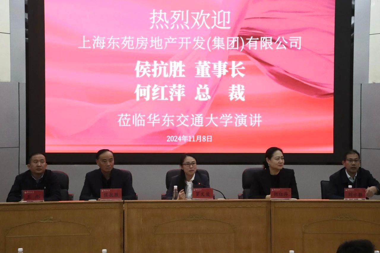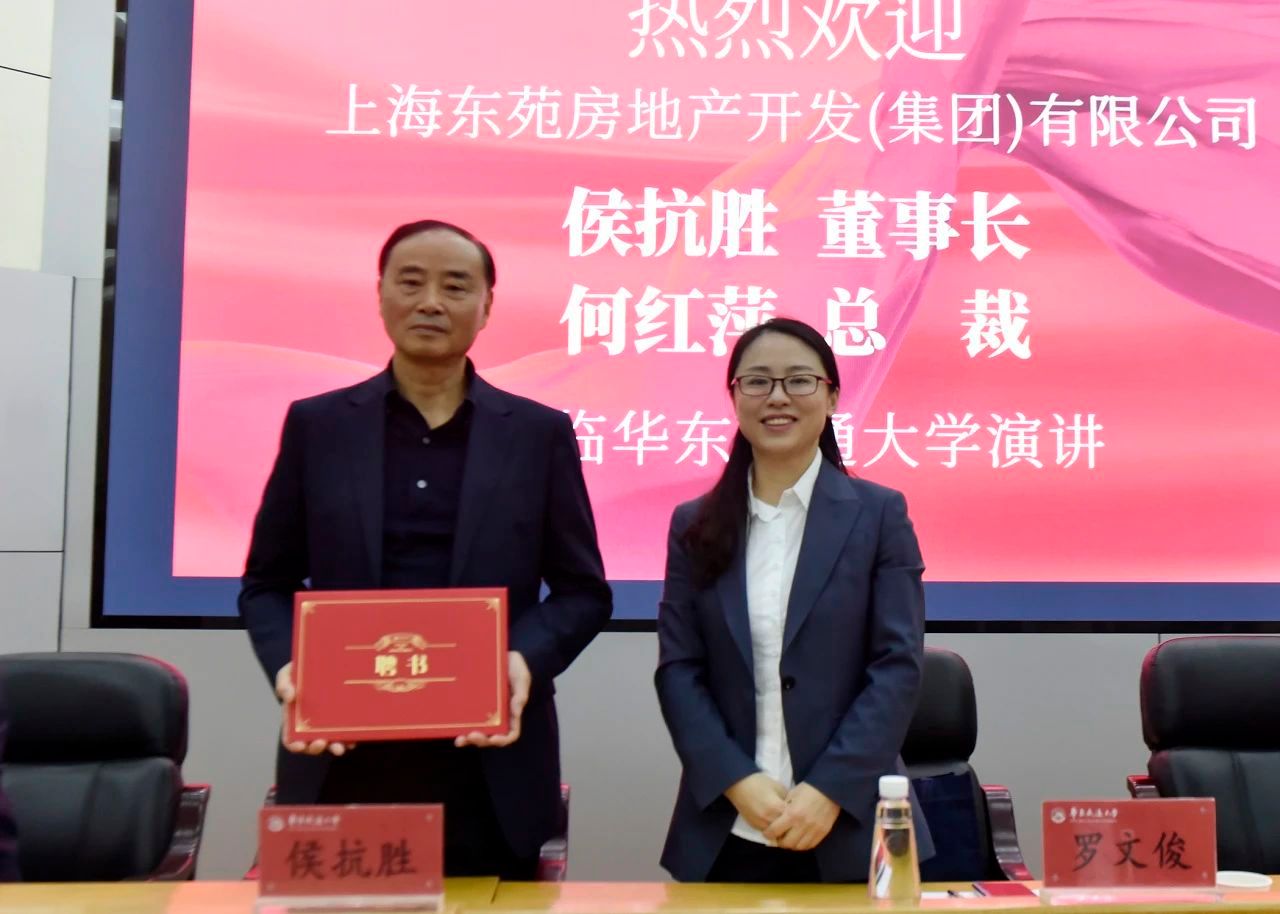 11月8日上午,土建学院邀请上海东苑房地产开发(集团)有限公司的董事长侯抗胜先生与总裁何红萍女士(工民建90级,校杰出校友)来校作报告。校党委副书记罗文俊出席并致辞,报告会由院党委书记刘永胜主持。