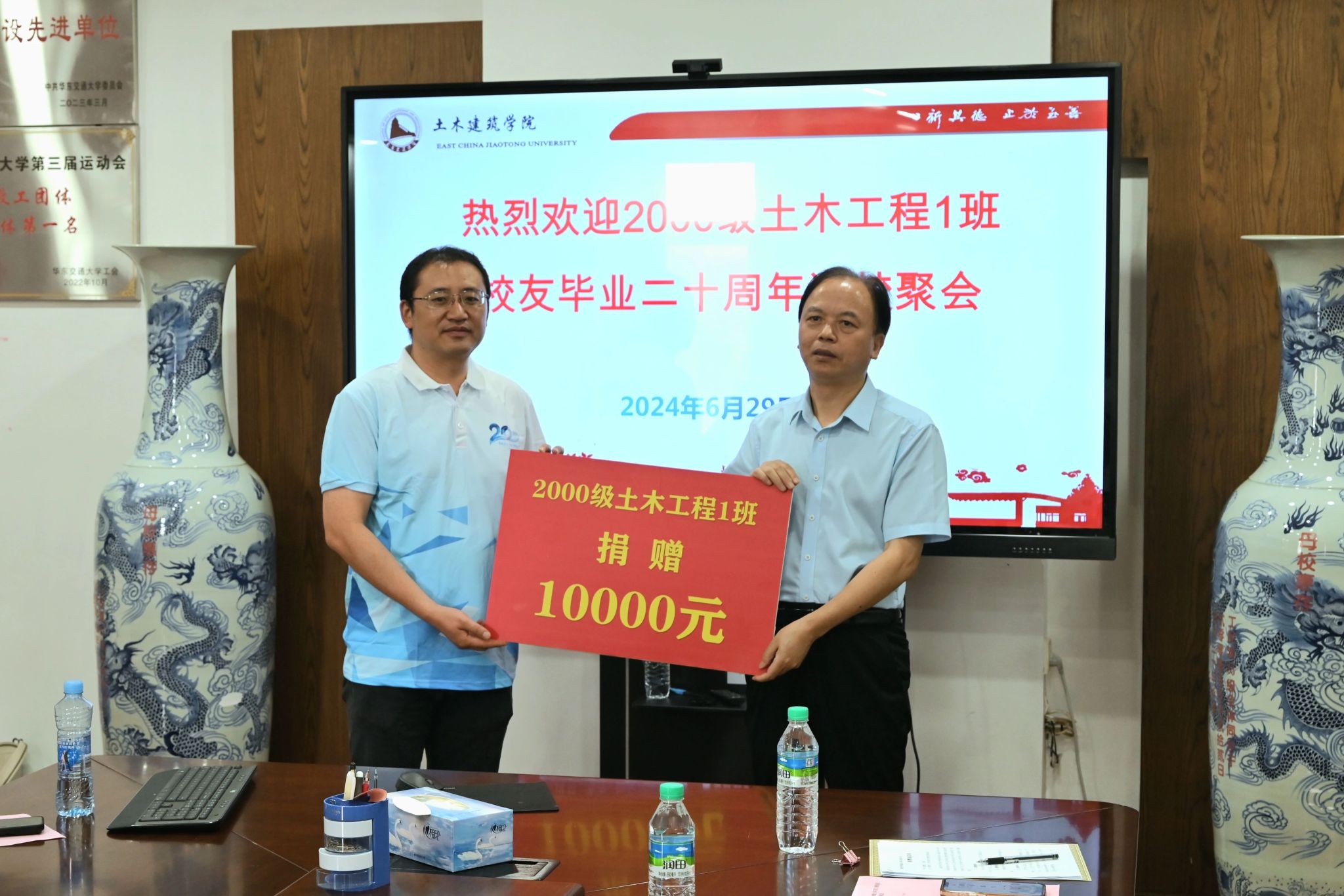 会上,2000级土木1班校友为学院进行捐赠,借助返校聚会的机会,表达了自己对母校母院的一片赤诚之心。