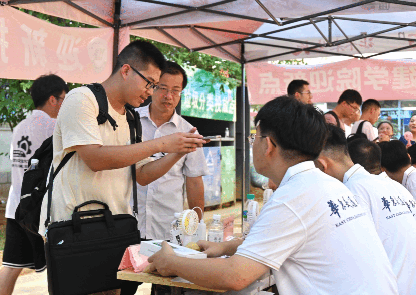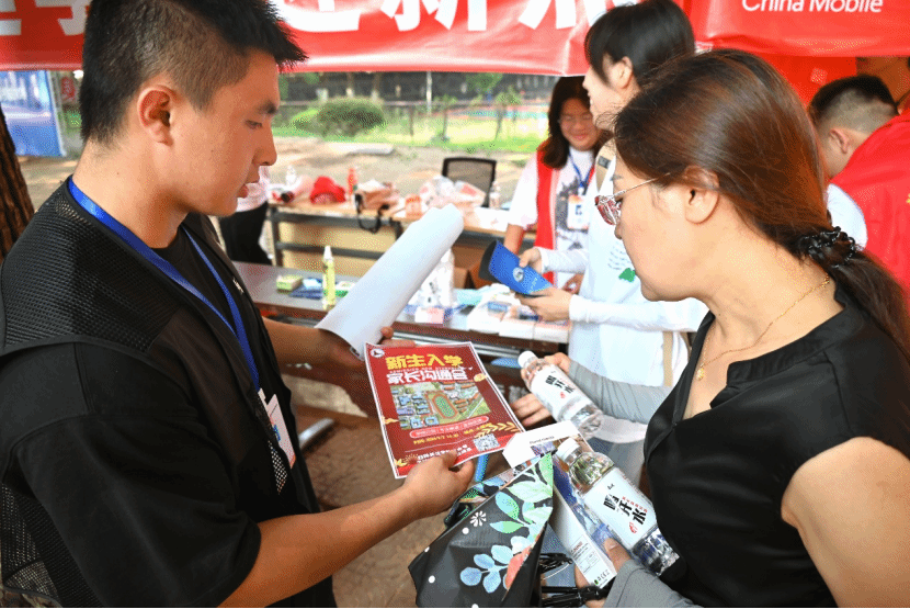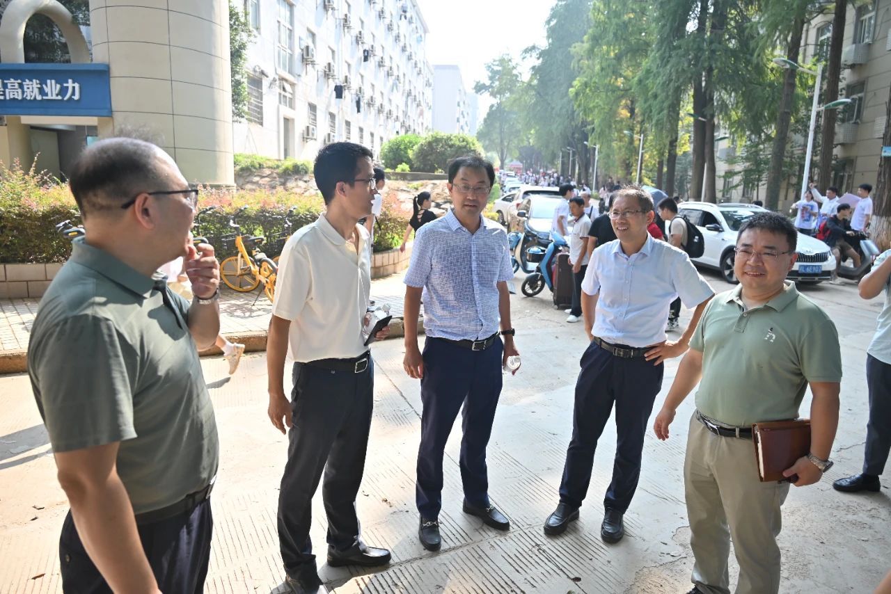9月2日,院党委书记刘永胜、院长庄海洋、党委副书记郑轶,来到迎新工作区,看望新生并慰问志愿者。