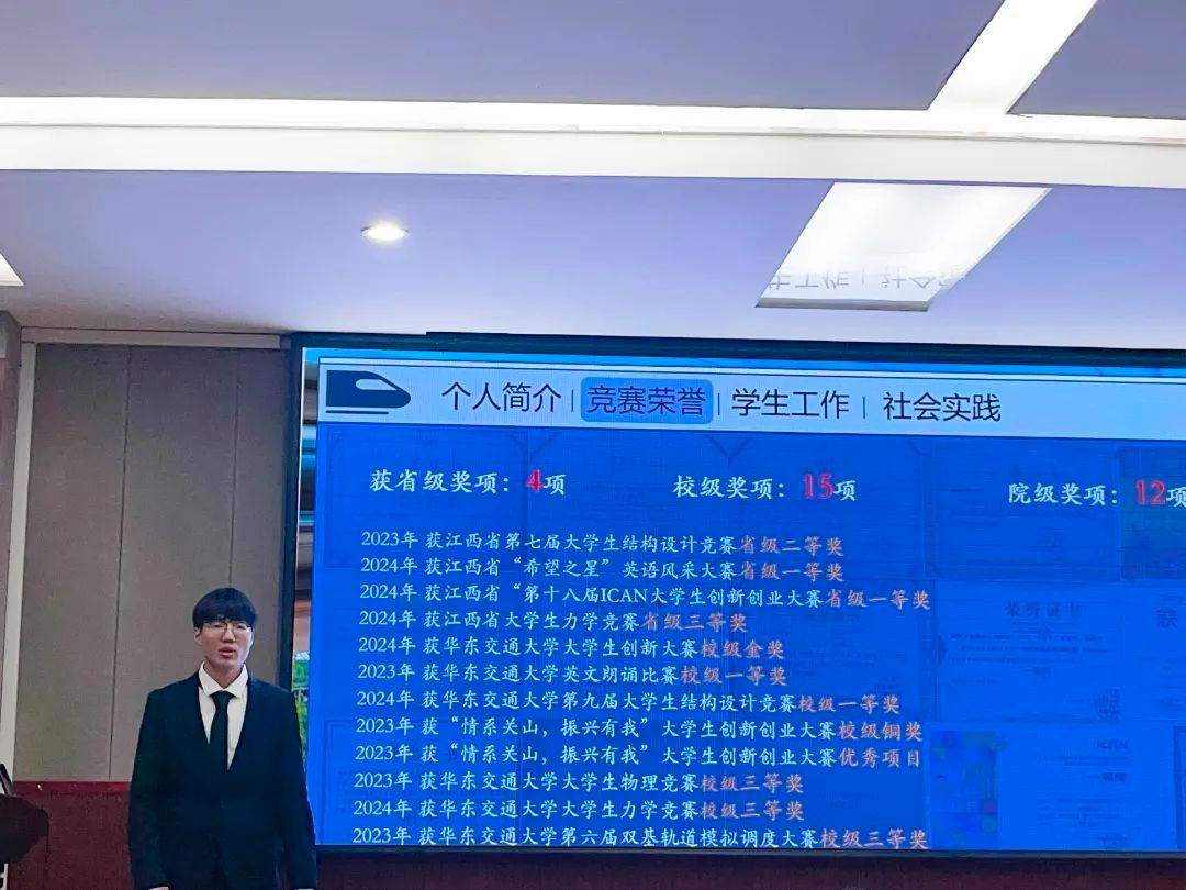 土木(城轨詹天佑)2022-1班,均学分绩点4.21。欧阳豪同学在学术、竞赛、学生活动和社会实践方面均有突出表现,成绩优异,连续两年专业排名第一,获得多项荣誉。积极参与社团活动,担任学生干部,展现出良好的组织和领导能力。同时,他热心公益,志愿服务表现突出,是一位全面发展的优秀大学生。