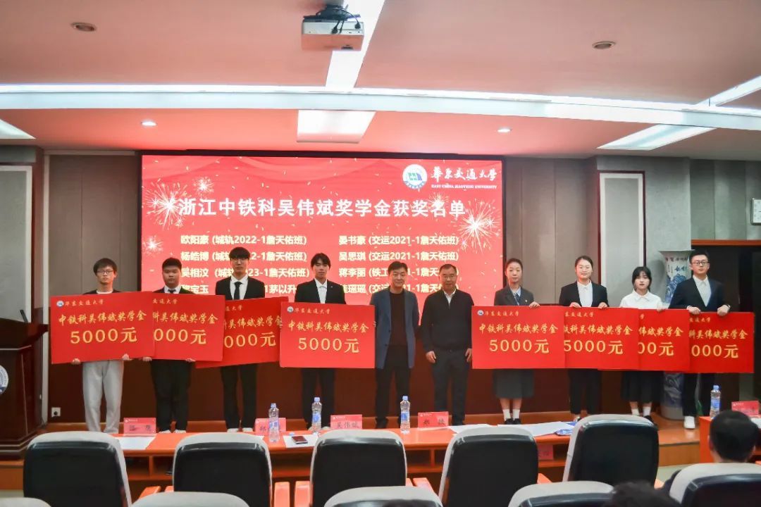 为培养更多品学兼优并具有社会责任感的优秀人才,浙江中铁科工程咨询有限公司捐赠德赢官网设立“浙江中铁科吴伟斌奖学金基金”,此基金用于奖励“詹天佑班”“茅以升班”品学兼优的学生,每年评选8人,奖金为5000元/人,土建学院和交通学院各评选4人。