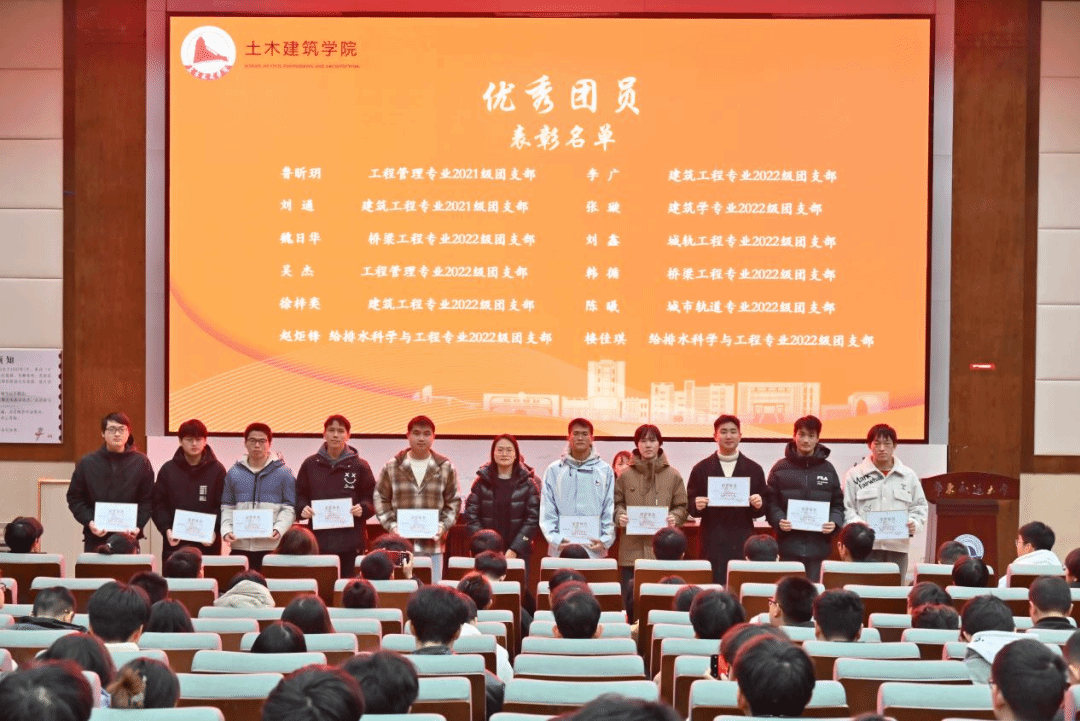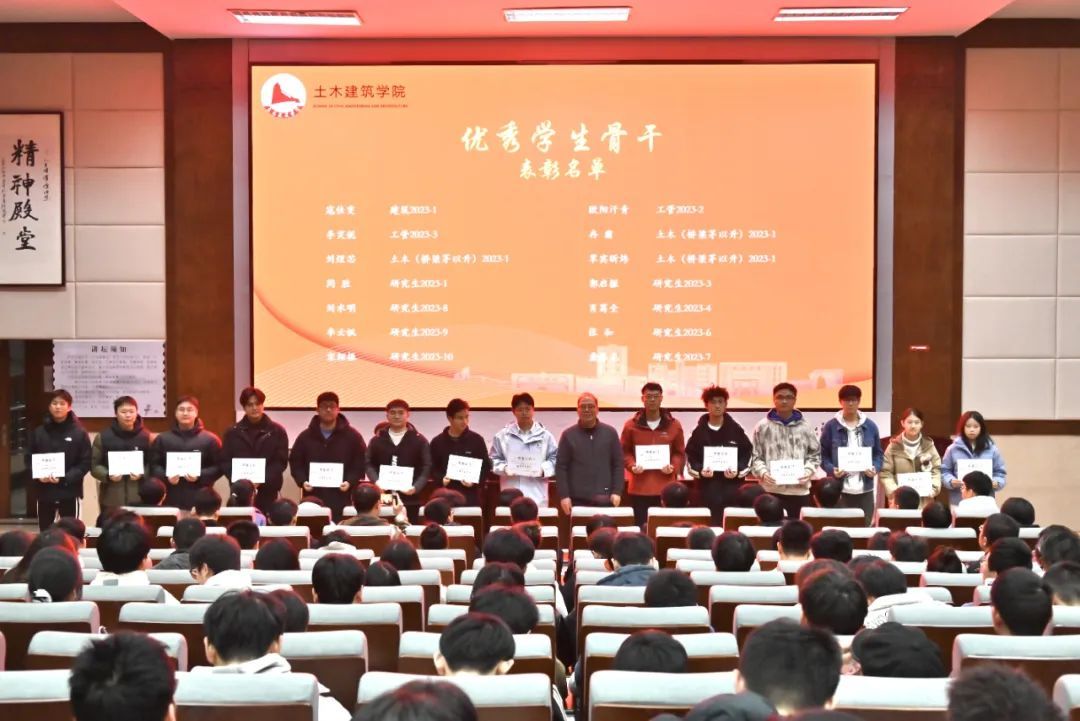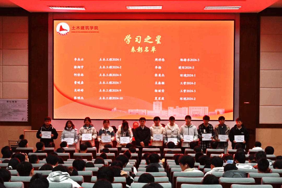 为总结成绩,表彰先进,更好地发挥优秀学生骨干的模范带头作用,推进学院学团工作再创佳绩,并带动优良学风的形成,12月12日晚,土建学院于南区图书馆202召开2024年度“砼心圆”优秀学生骨干表彰大会暨学风建设表彰大会。土建学院党委副书记郑轶,学工办主任兼团委书记万雯怡,学工办副主任兼团委副书记华罗娟、贺慧文,兼职团委副书记严安迪,融媒体中心负责老师黄伟豪出席会议。大会由张富乐、王嘉昱同学主持,土建学院团委、学生会全体成员以及受表彰同学与会。