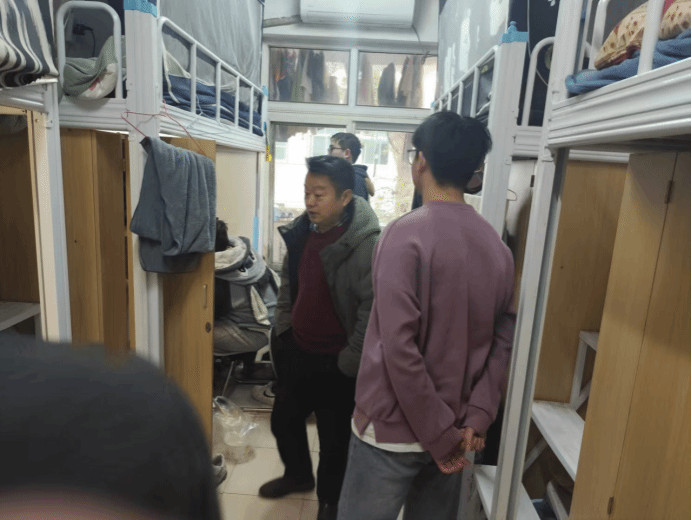 12月26-27日,土建学院党委副书记郑轶带队辅导员检查所带班级学生寝室,重点检查寝室用电安全、消防安全、卫生状况。研究生辅导员和研分会开展研究生宿舍卫生、安全大检查。