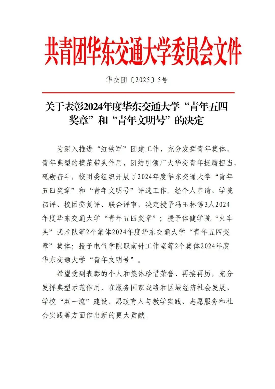 ●冯玉林老师荣获2024年度vwin德赢ac米兰官方网“青年五四奖章”。