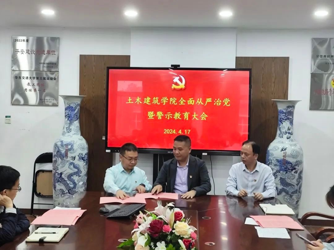 院党委书记陈水生与党支部书记代表李晨、万雯怡签订了意识形态责任书,随后,他与院长庄海洋同系部主任代表伍海山、冯玉林签订了全面从严治党责任书。