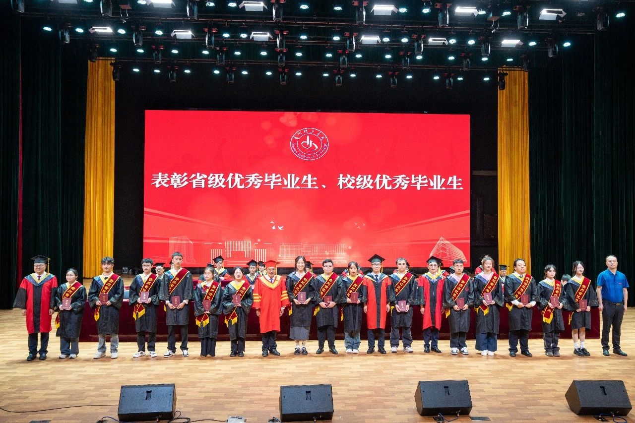校领导、校党委委员为获得省级和校级优秀毕业生表彰的毕业生代表颁发证书。