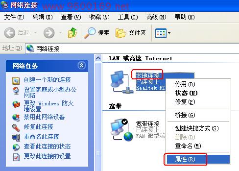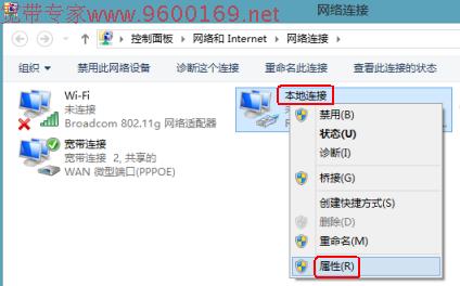 7、右键单价“本地连接”,左键单价“属性”。(图7)