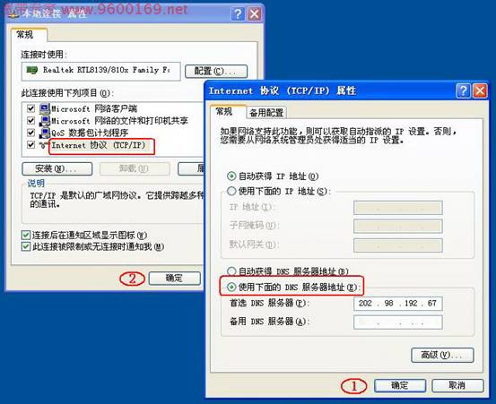 一、 设置DNS服务器(不同的操作系统设置步骤略有不同,这步很关键,必须设置正确)